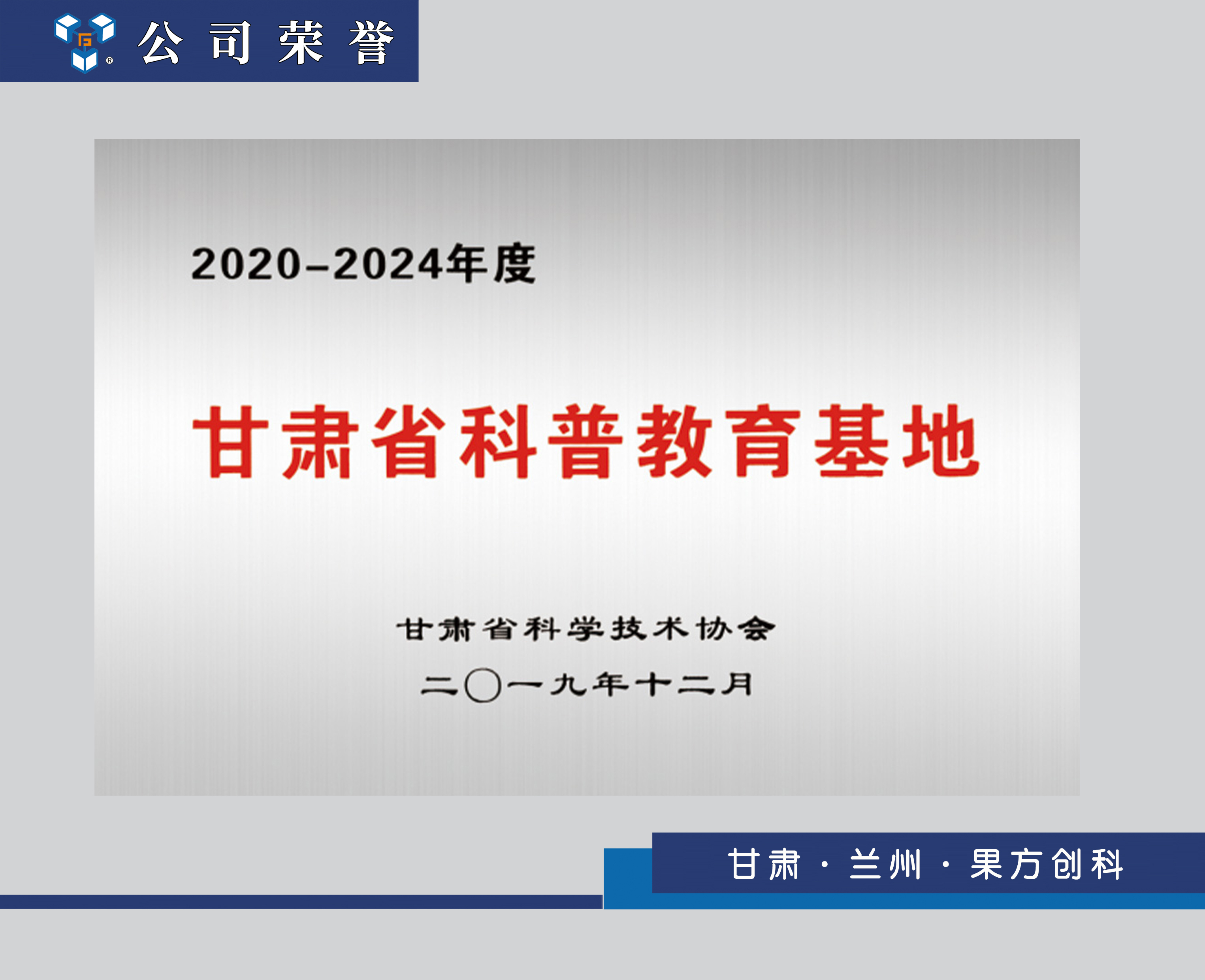 公司于2019年12月被認(rèn)定為2020-2024年度甘肅省科普基地